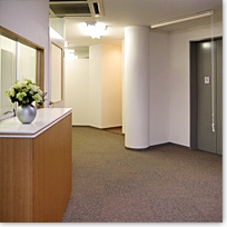 事務所にお入りいただくと、正面に受付カウンターがあります。